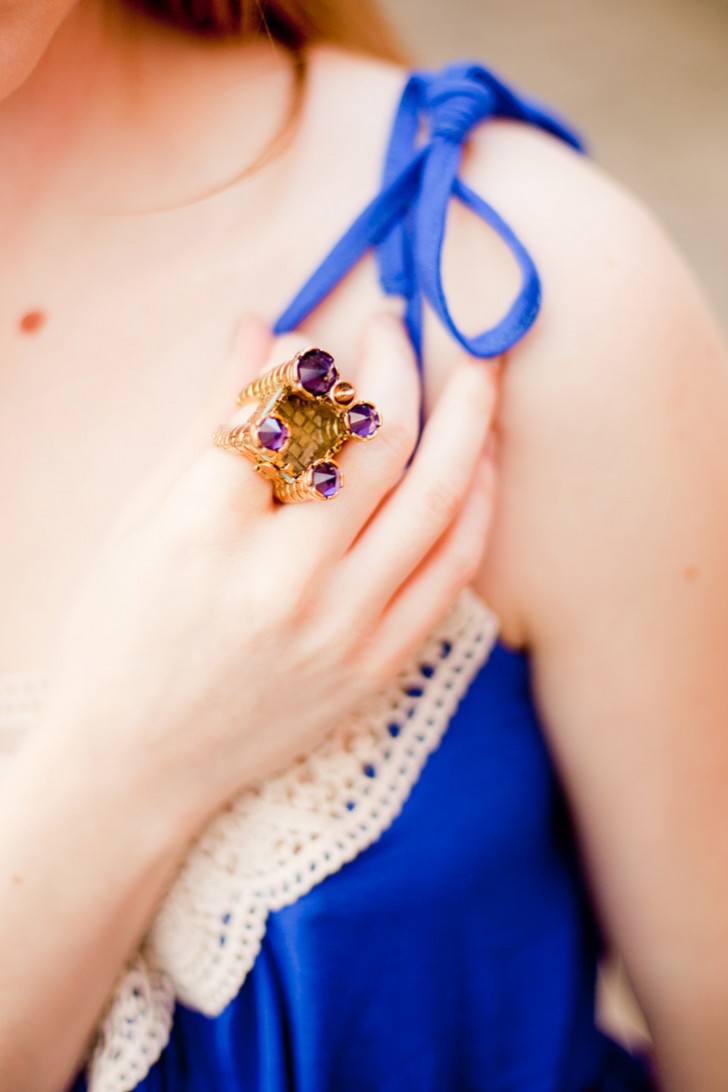 ooooh that ring is so cute! make you live in a fairytale. And I also love your dress, the color makes an excelent contrast with your hair color. 😀
