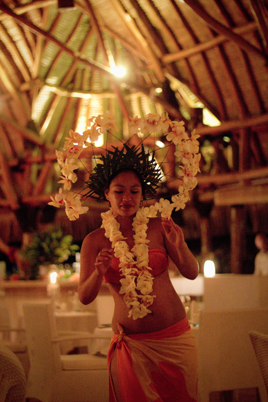 Je n’aimais pas trop le soir en polynésie : tout est éclairé au néon, les restos ont des petites allures fantomatiques et cette lumière froide donne un côté un peu tristoune à ces tableaux nocturnes. On cherchait donc toujours des endroits un peu romantiques avec une jolie lumière pour continuer à nous faire des sourires niais en sirotant notre jus d’ananas 🙂