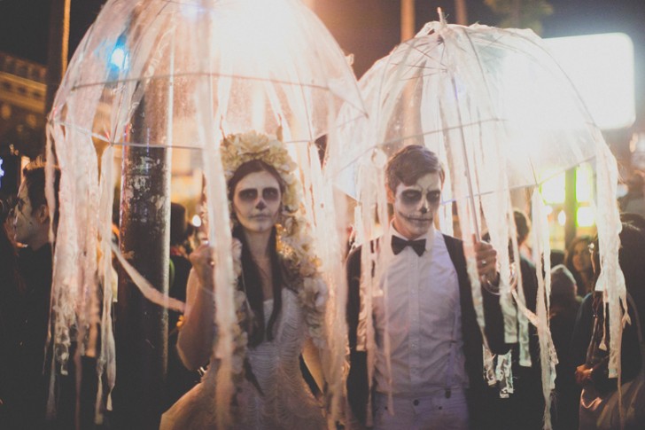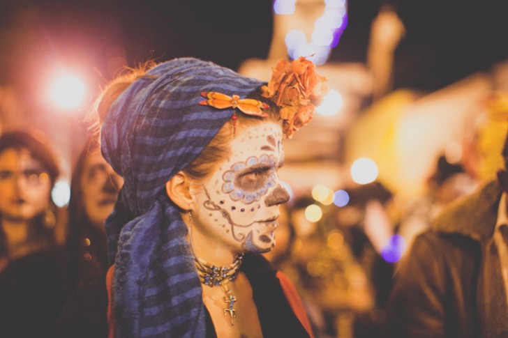 Les déguisements sont magnifiques, le maquillage en est une oeuvre d’art! J’adore ces photos, elles font vraiment «jour des morts»!