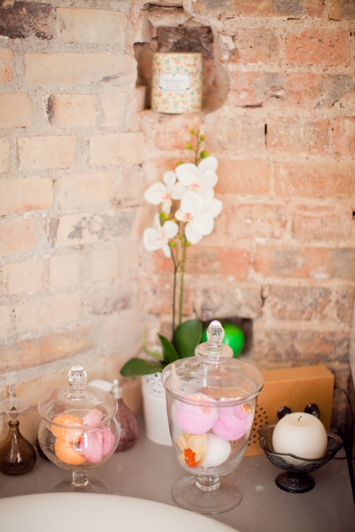 J’ai un énorme coup de coeur pour ta salle de bain. Ça doit être un coin vraiment relaxant. J’aime énormément le miroir et les bonbonnières remplies de ballistics et pains moussants.