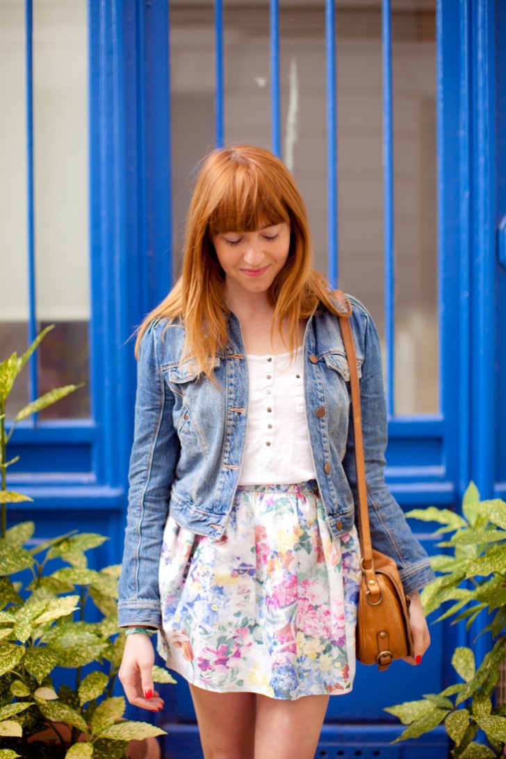 Tu as vraiment le chic pour trouver les lieux idéaux pour faire les photos ! Ce bleu et la jupe fleurie, chapeau !