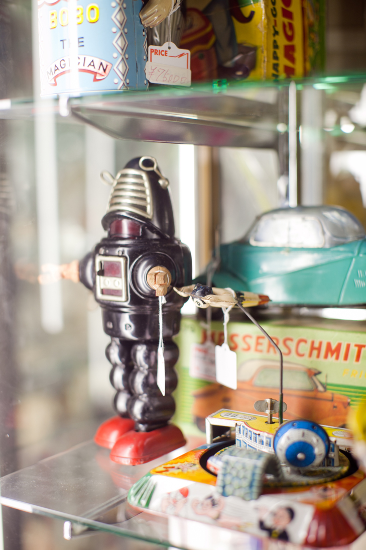 Les petits robots devant leurs boites sont déments, j’aime autant les robots que les boites. C’était un antiquaire de jouets? on dirait que certains sont des jouets vintage