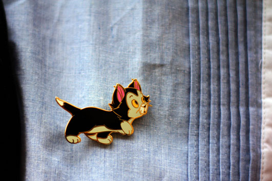 J’ai donc sorti mon serre tête d’alice et mon adorable pin’s disney (celui qui me dis dans quel film on voit ce petit chat gagne… rien, mais gagne quand même).