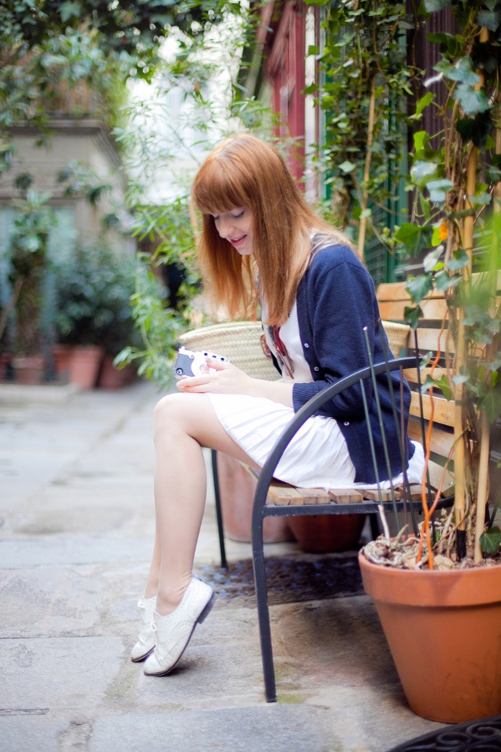 Quel joli endroit pour se promener et prendre des photos ! Une tenue toute fraîche, j’aime ces petites derbies blanches!