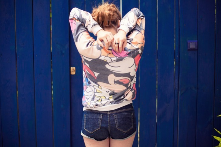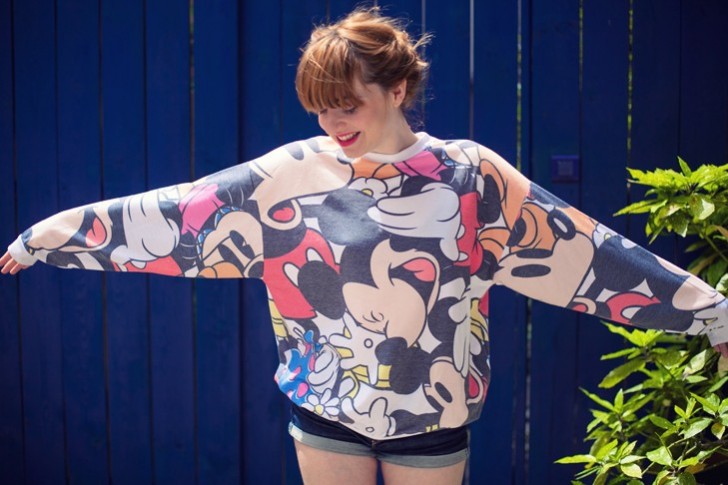 Ah! Génial ce sweat Mickey! J’adore avec le short en jean!