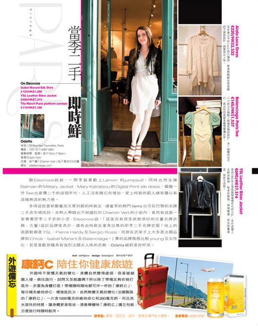 Avril 2010 – Week end weekly (Hong Kong) : “Paris – Vintage style : Eleonore Bridge” :