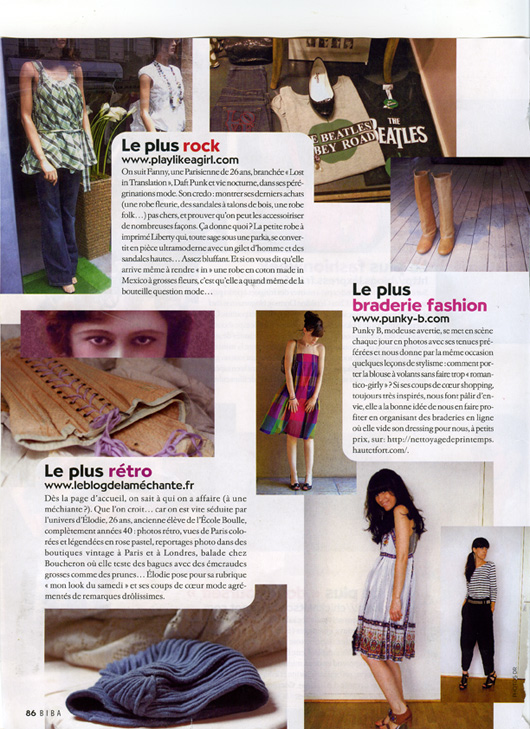 Septembre 2008 – Biba : “Nos blogs mode préférés” :